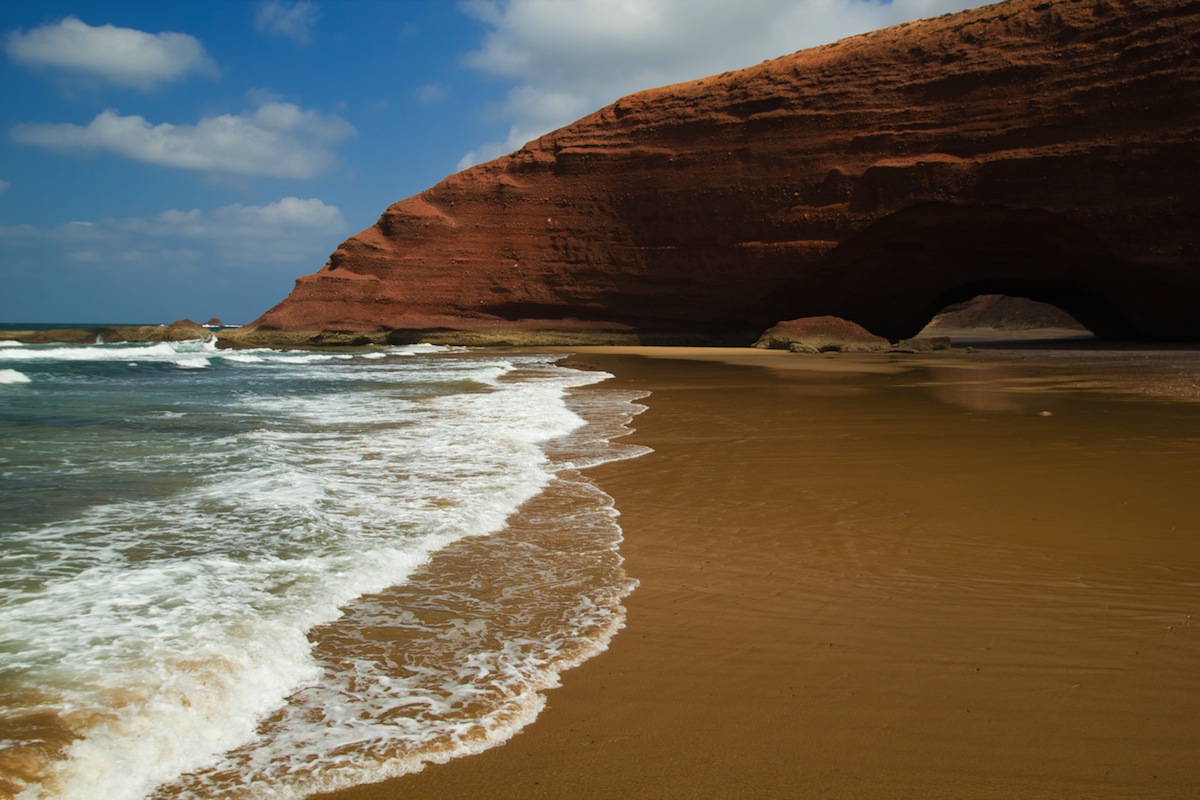 huge red cliffs on the beach Legzira
